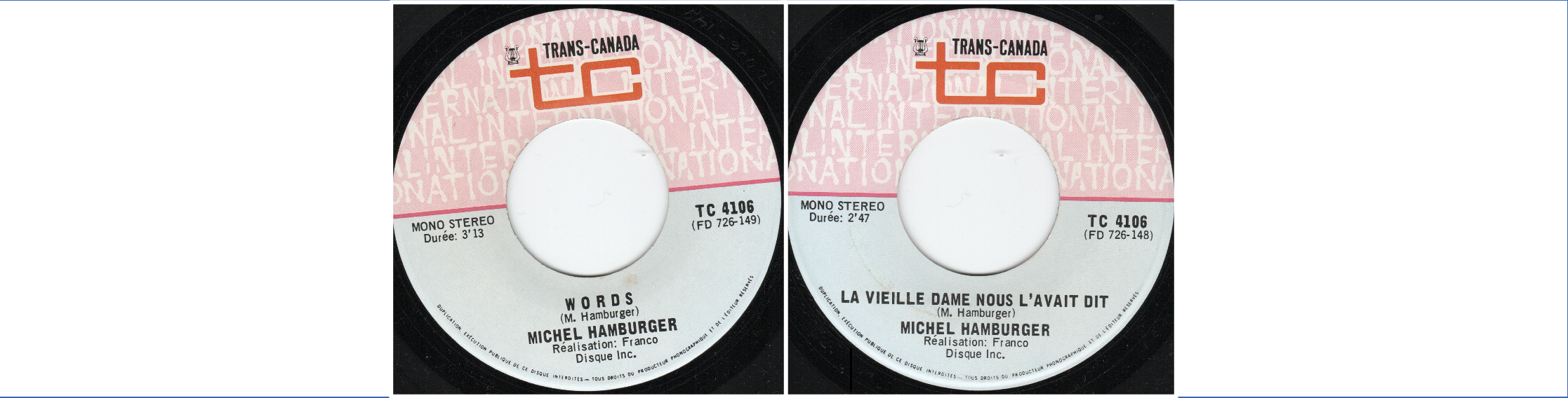 1972 - Sous le nom "Michel Hamburger" - Canada - TC 4106
